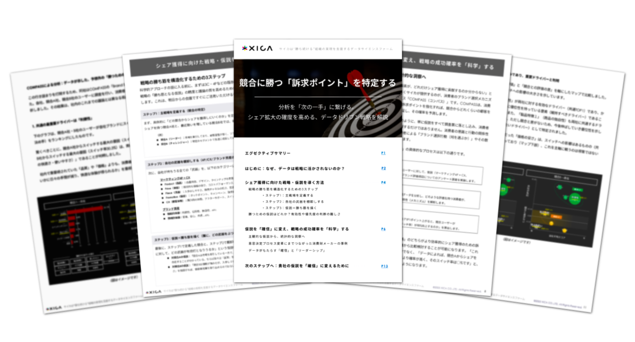 まず、4Pやブランド資産といった要素から「勝てる仮説」を構造化するための3ステップを提示します。さらに、その仮説を消費者データで科学的に検証し、競合からの顧客獲得確率(=スイッチ率)を特定する分析アプローチまでを紹介します。主観的な「仮説」を、客観的な「確信」に変え、成果に直結させるための一冊です。