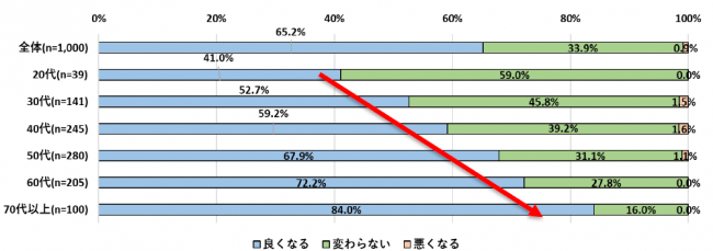 また、20代では59.0%が「印象は変わらない」と回答していることから、若い年代ほど「サステナビリティは意識して当たり前」と考えているといった仮説も立てられます。